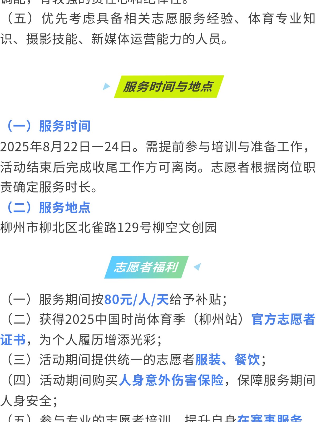 加入我們!2025 中國(guó)時(shí)尚體育季(柳州站) 志愿者招募中! 發(fā)布時(shí)間:2025年08月15日 10時(shí)來(lái)源:本站原創(chuàng)瀏覽:76 人次