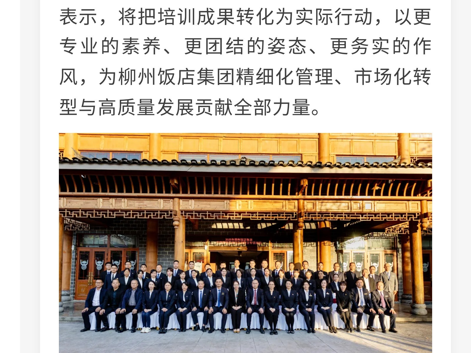 【同心致遠(yuǎn),聚力前行】柳州飯店集團(tuán)中層管理干部團(tuán)隊(duì)凝聚力系列專項(xiàng)培訓(xùn)圓滿收官 發(fā)布時(shí)間:2025年12月01日 09時(shí)來源:本站原創(chuàng)瀏覽:59 人次