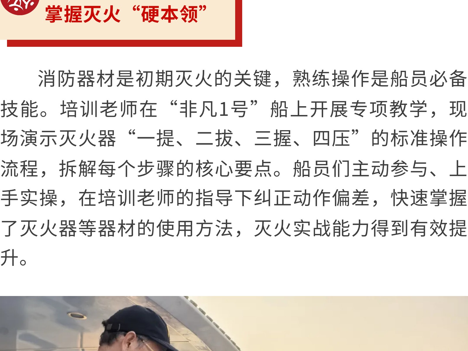 【強(qiáng)化船上消防,守護(hù)航行安全】銀柳水上旅客運輸有限公司開展消防安全培訓(xùn)活動 發(fā)布時間:2025年12月09日 10時來源:本站原創(chuàng)瀏覽:43 人次