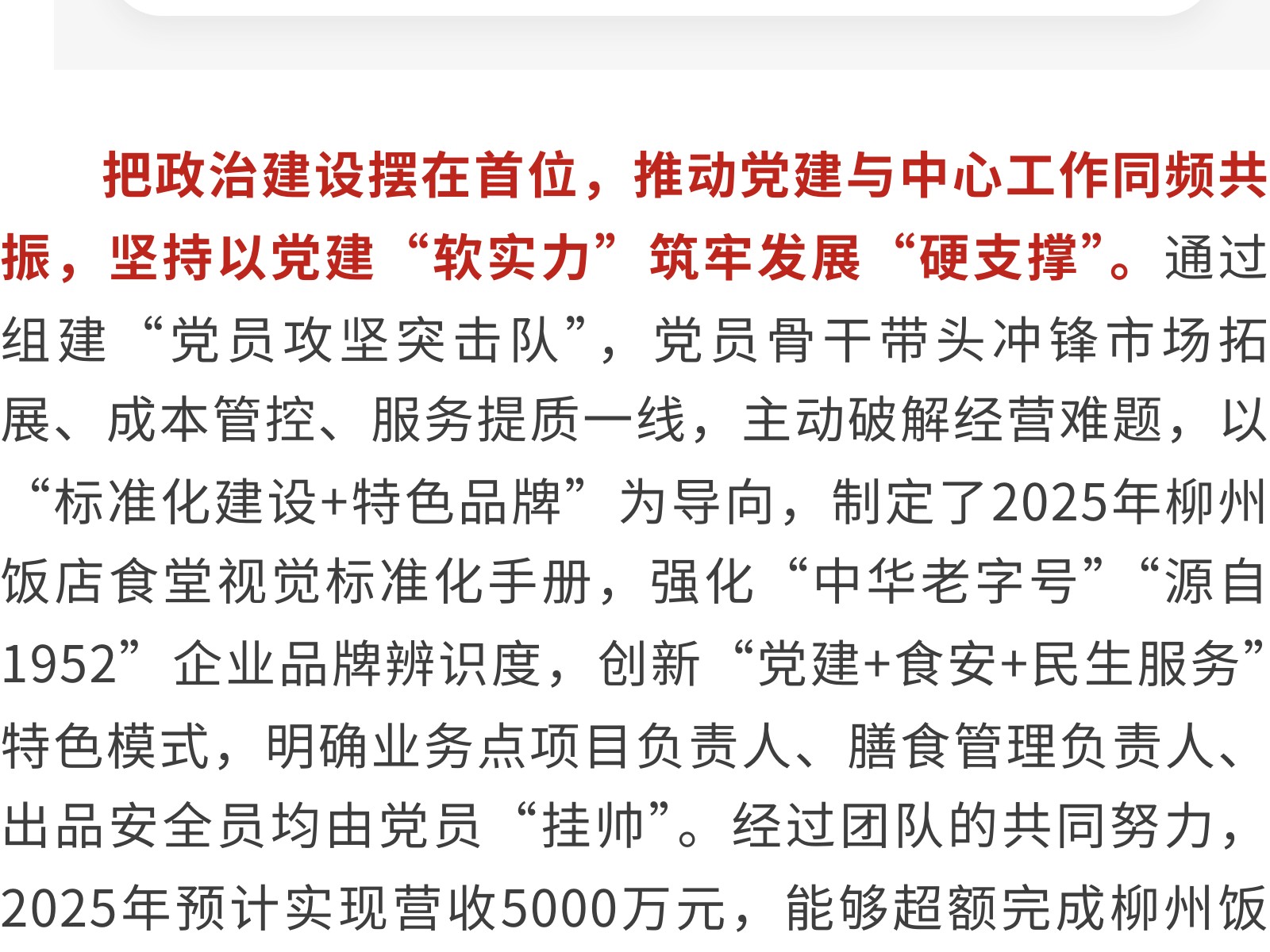 【實(shí)干繪就新答卷 黨建引領(lǐng)業(yè)務(wù)優(yōu)】柳州飯店事業(yè)發(fā)展黨支部推動(dòng)黨業(yè)融合紀(jì)實(shí) 發(fā)布時(shí)間:2025年12月10日 10時(shí)來源:本站原創(chuàng)瀏覽:42 人次