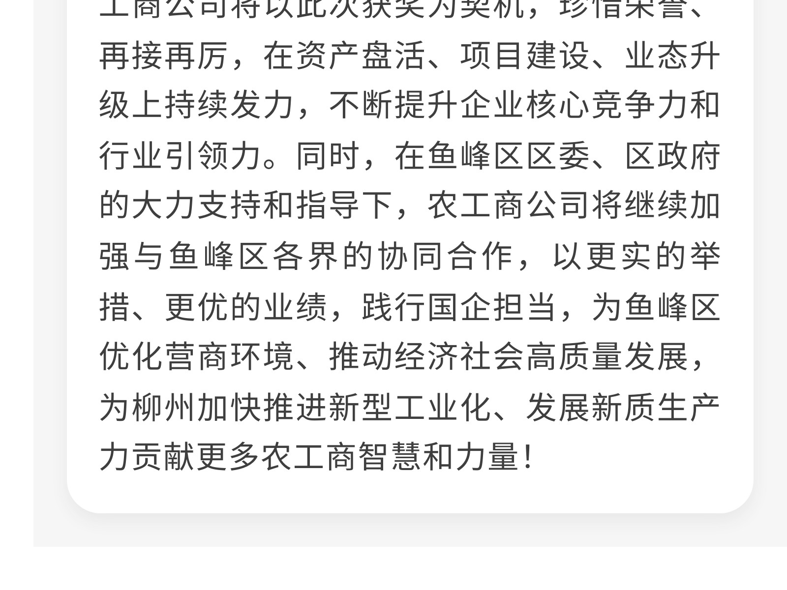 喜獲殊榮!柳州農(nóng)工商公司榮膺魚峰區(qū)“行業(yè)引領(lǐng)獎(jiǎng)” 發(fā)布時(shí)間:2026年03月05日 10時(shí)來源:本站原創(chuàng)瀏覽:17 人次
