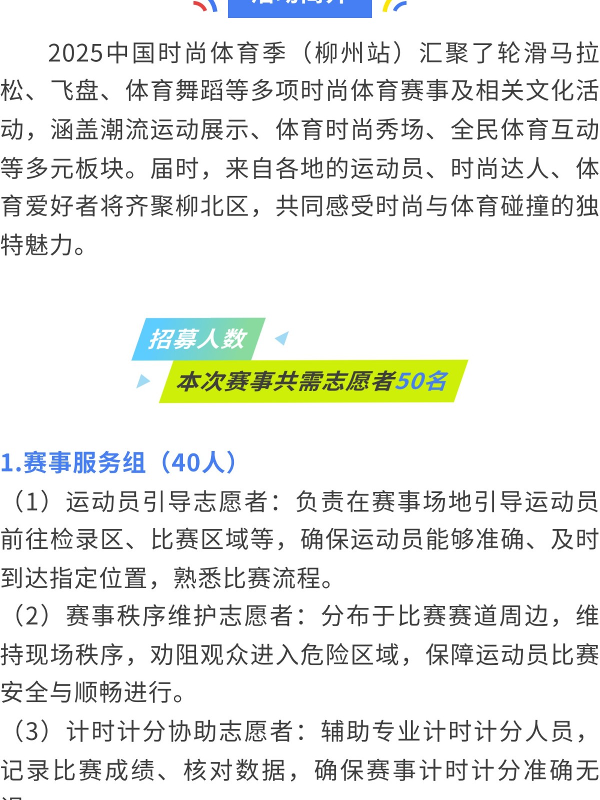 加入我們!2025 中國(guó)時(shí)尚體育季(柳州站) 志愿者招募中! 發(fā)布時(shí)間:2025年08月15日 10時(shí)來(lái)源:本站原創(chuàng)瀏覽:76 人次