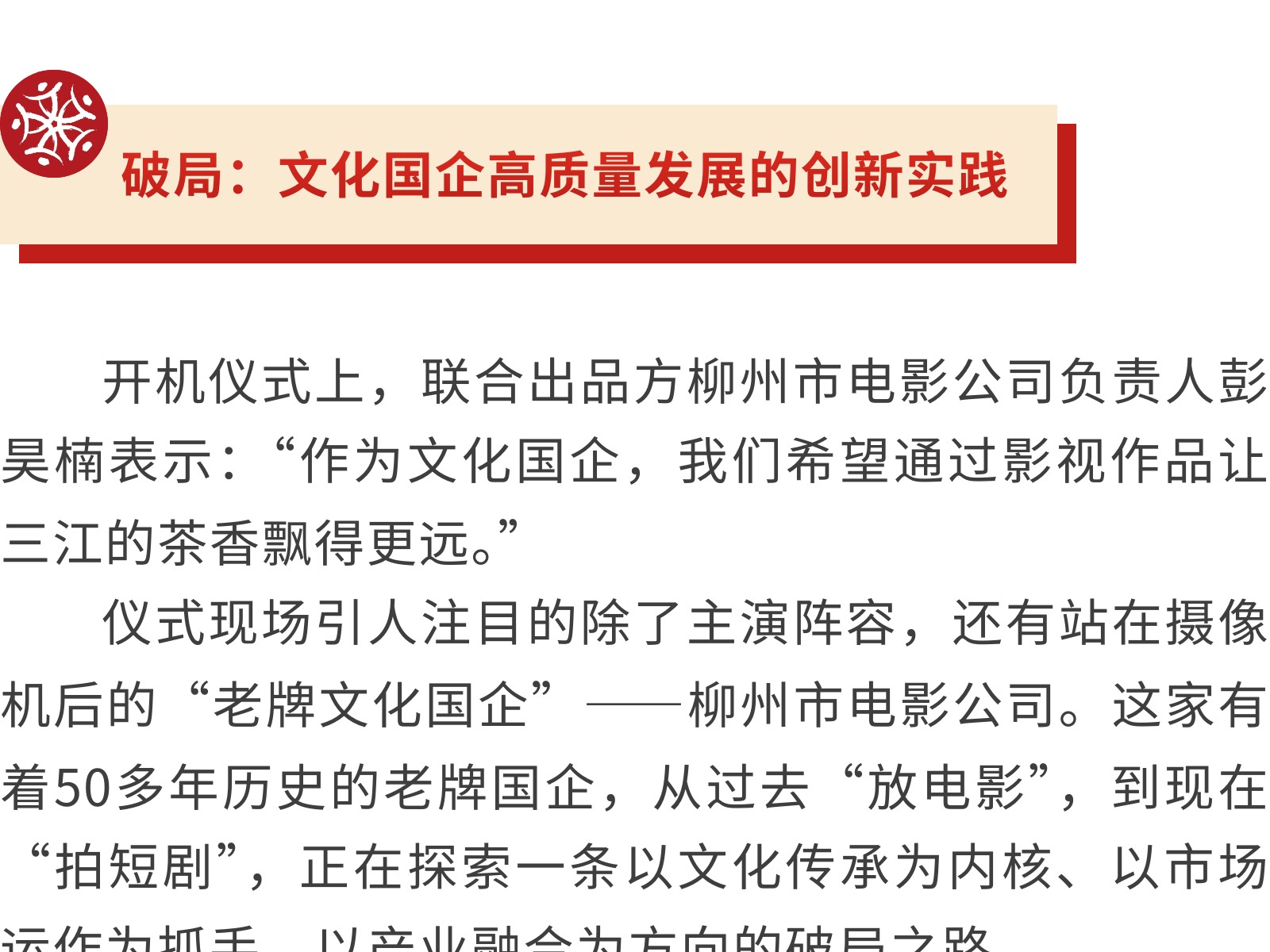 柳州國企攜手優(yōu)秀影視團(tuán)隊打造本土非遺文化短劇,積極探索柳州影視文旅發(fā)展新路徑! 發(fā)布時間:2025年07月22日 10時來源:本站原創(chuàng)瀏覽:261 人次
