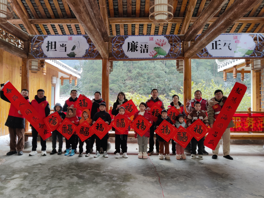文旅集團(tuán)“國企工匠”文化志愿服務(wù)隊(duì)員向村民贈(zèng)送新春“?!弊?,還為培秀村脫貧戶、監(jiān)測戶贈(zèng)送了毛毯等新春慰問品,祝福大家新年快樂!