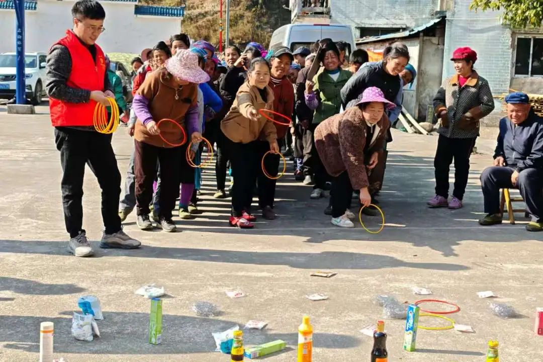 為營造濃厚的新春佳節(jié)氛圍,進一步鑄牢中華民族共同體意識,工作組在培秀村開展了“暖心關(guān)愛 迎春送?!毙麓河螆@活動。現(xiàn)場設(shè)置了歡樂投壺、幸運套圈、魅力投籃、魔力足球等趣味項目。村民們熱情高漲,紛紛踴躍參與其中,現(xiàn)場氛圍熱烈非凡,歡聲笑語不斷?;顒幼尵用裨跉g樂祥和的氛圍中迎接新年,深切感受黨的溫暖與關(guān)懷,進一步增強了村民間的凝聚力與活力。