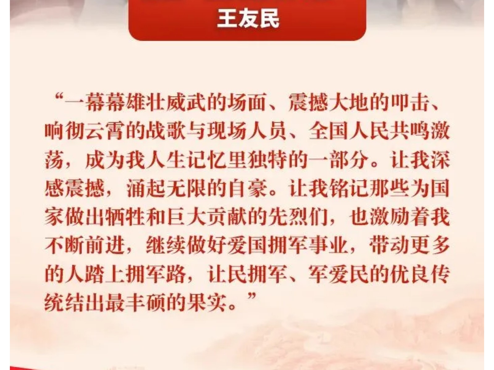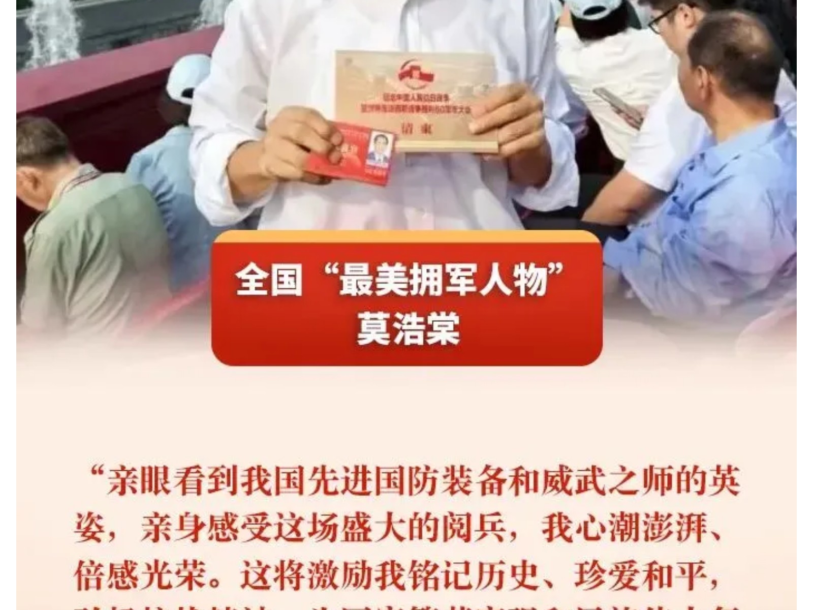 【最美擁軍人物】九三閱兵觀禮臺(tái)上的雙擁身影,他們是誰(shuí)? 發(fā)布時(shí)間:2025年09月19日 10時(shí)來(lái)源:本站原創(chuàng)瀏覽:165 人次