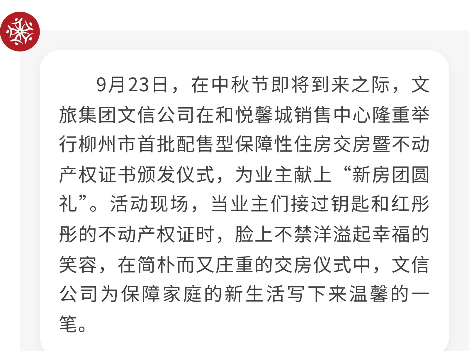 我市首批配售型保障性住房實(shí)現(xiàn)“交房即交證” 發(fā)布時(shí)間:2025年09月27日 10時(shí)來(lái)源:本站原創(chuàng)瀏覽:156 人次