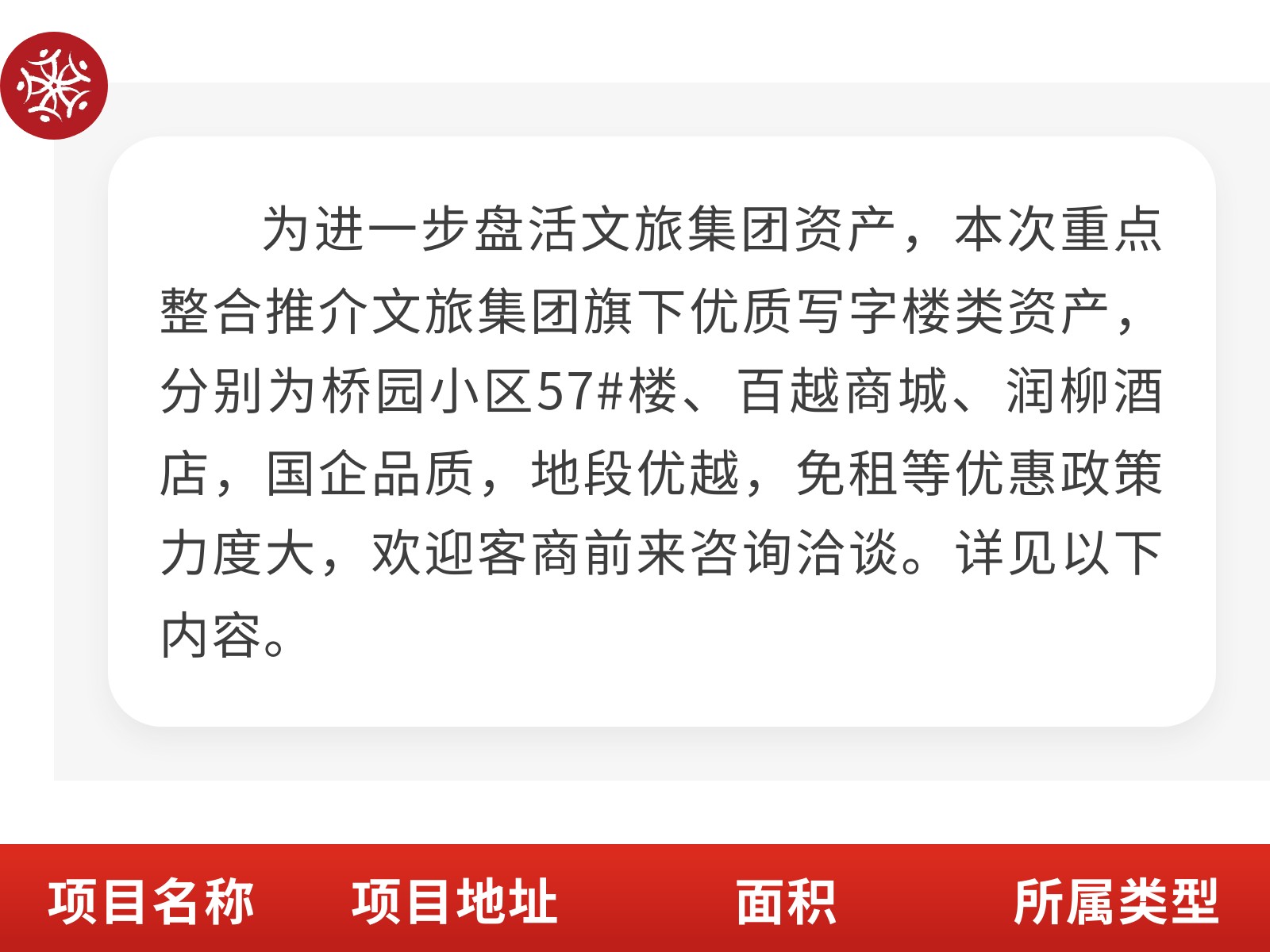 【國企品質(zhì) 誠邀共贏】文旅集團(tuán)寫字樓類優(yōu)質(zhì)資產(chǎn)對外招租 發(fā)布時(shí)間:2025年09月28日 11時(shí)來源:本站原創(chuàng)瀏覽:165 人次