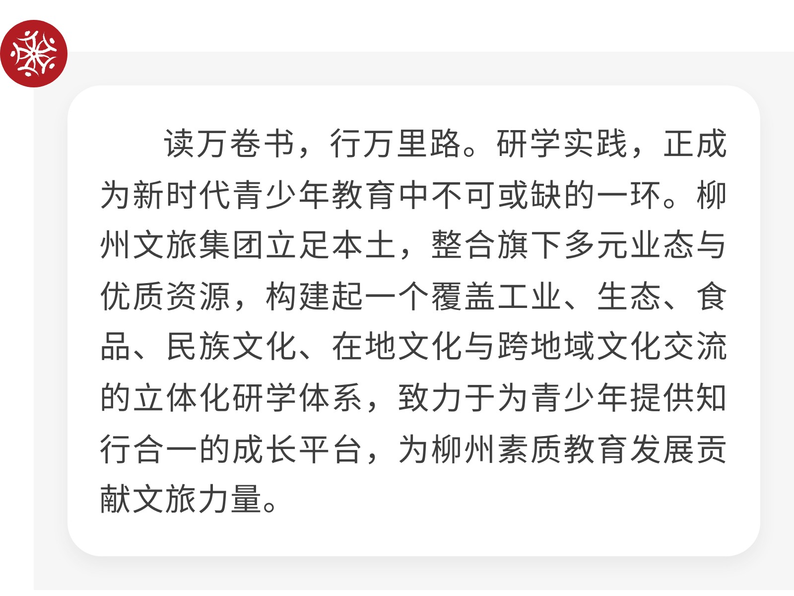 【鑄就研學(xué)新高地,賦能成長新未來】柳州文旅集團(tuán)研學(xué)產(chǎn)業(yè)實(shí)踐與展望 發(fā)布時(shí)間:2025年10月15日 09時(shí)來源:本站原創(chuàng)瀏覽:123 人次