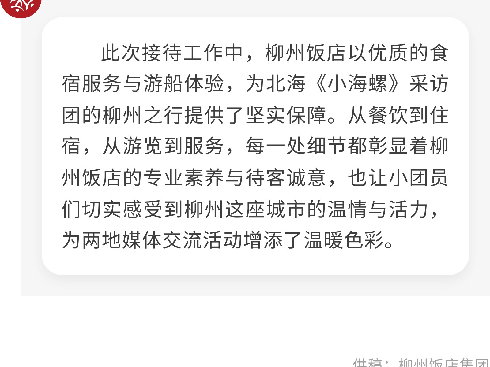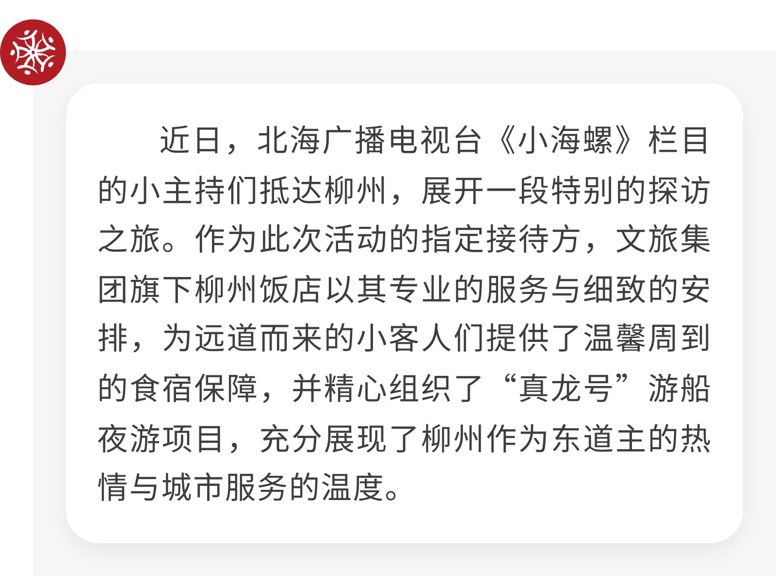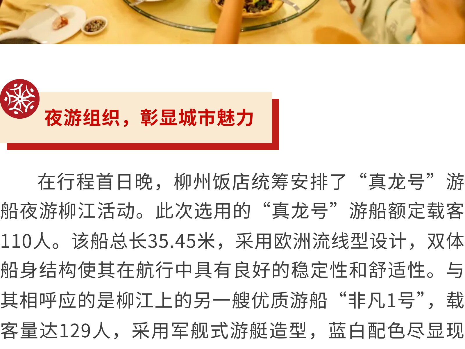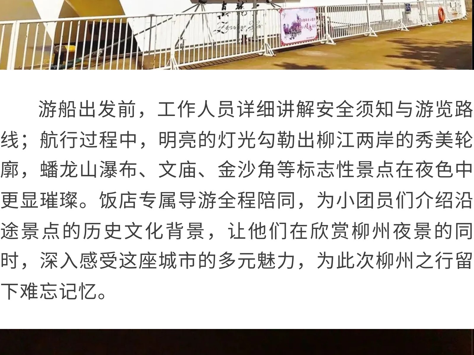 柳州飯店暖心接待北海“小海螺”,乘“真龍?zhí)枴惫操p柳江夜景暢談雙城情誼 發(fā)布時(shí)間:2025年11月07日 10時(shí)來源:本站原創(chuàng)瀏覽:119 人次
