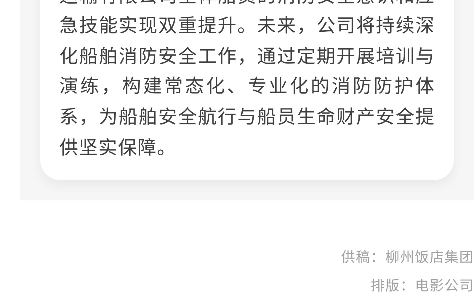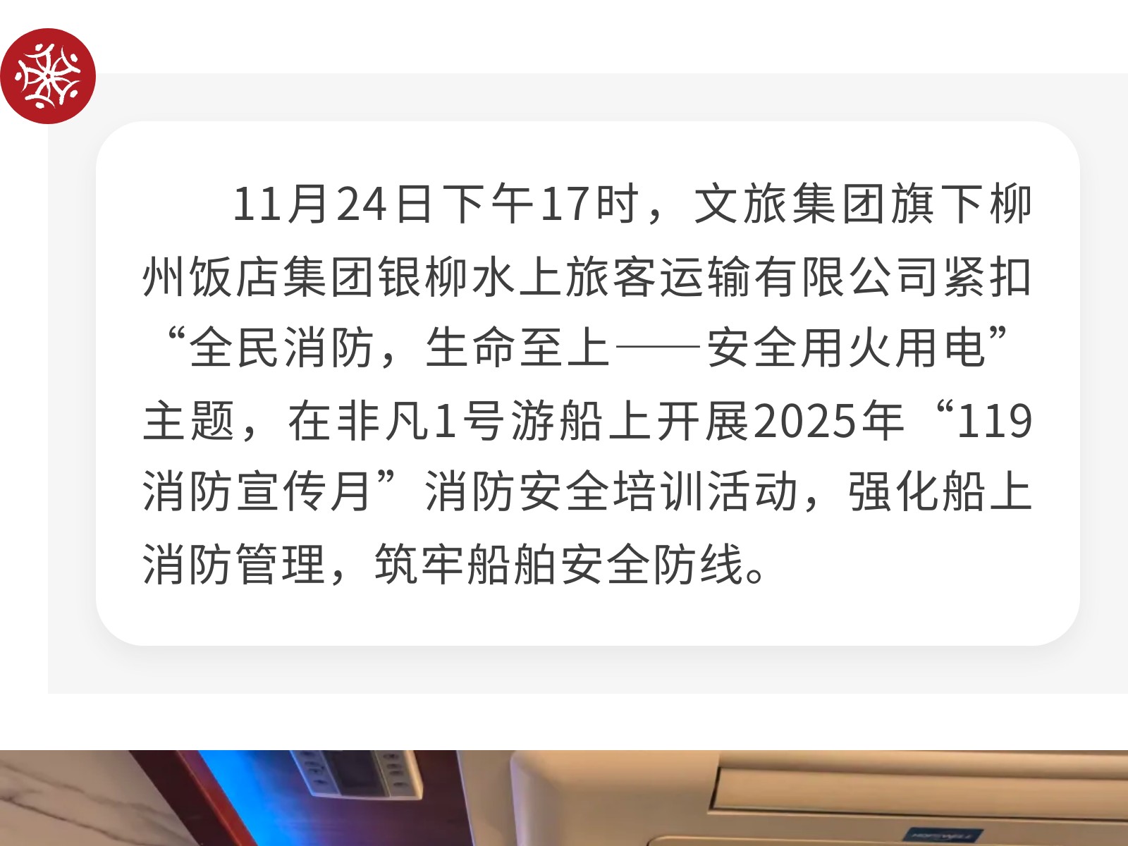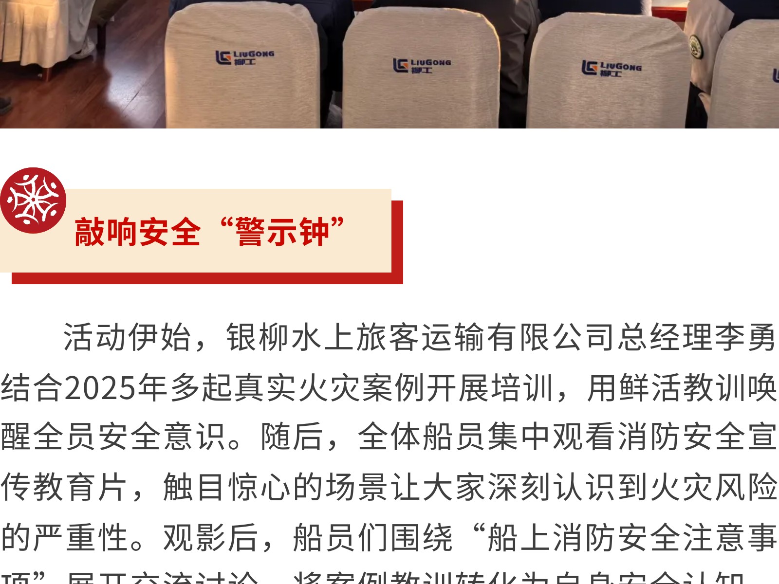 【強(qiáng)化船上消防,守護(hù)航行安全】銀柳水上旅客運輸有限公司開展消防安全培訓(xùn)活動 發(fā)布時間:2025年12月09日 10時來源:本站原創(chuàng)瀏覽:43 人次