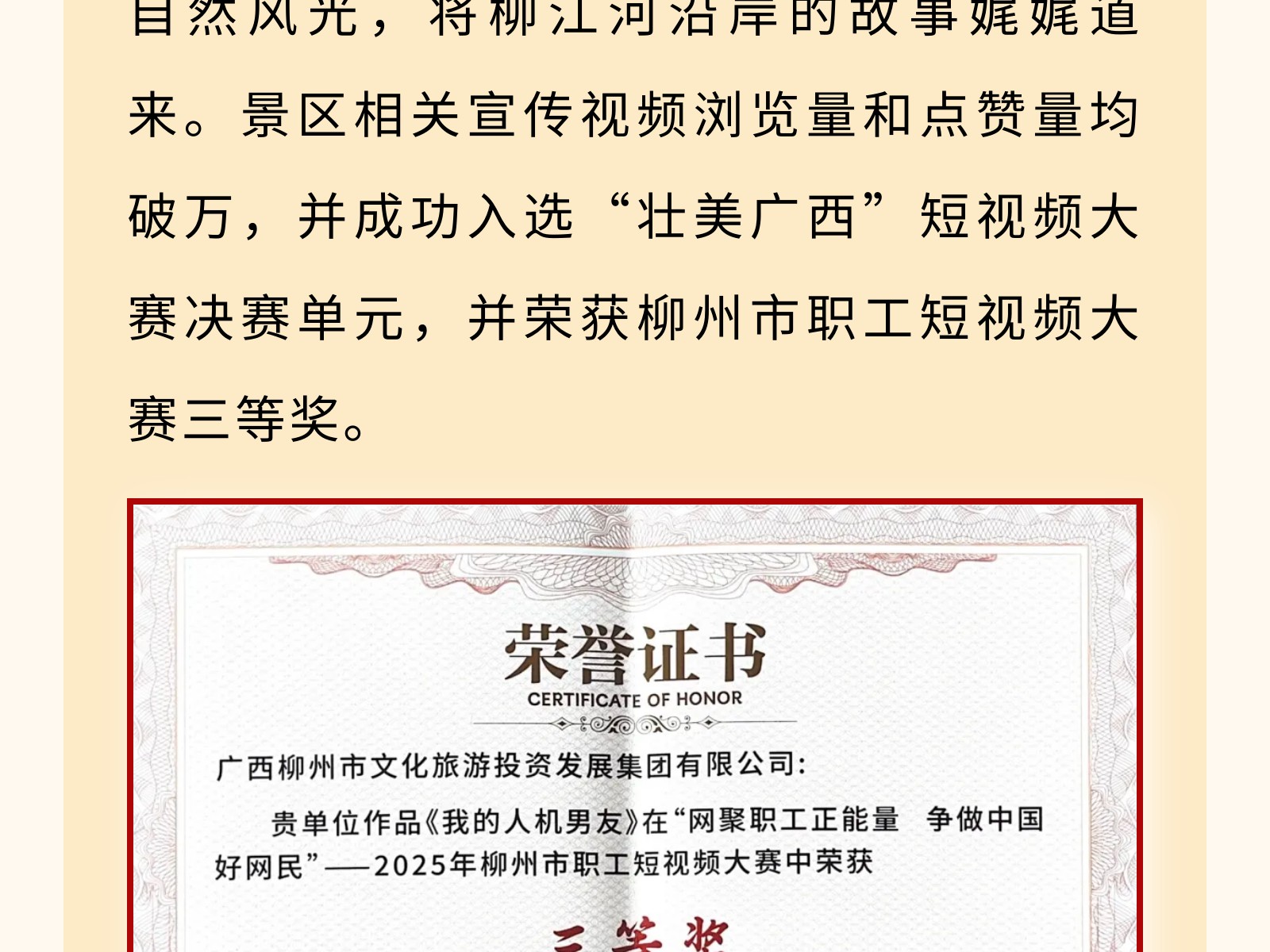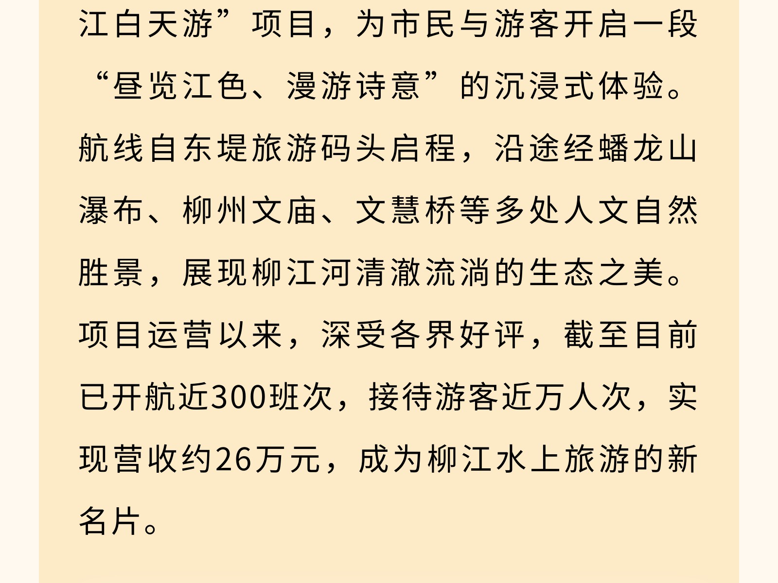 【文旅聚勢(shì)2025】碧水映城,風(fēng)帆勁起——百里柳江公司書(shū)寫(xiě)文旅融合新篇章 發(fā)布時(shí)間:2025年12月25日 10時(shí)來(lái)源:本站原創(chuàng)瀏覽:66 人次