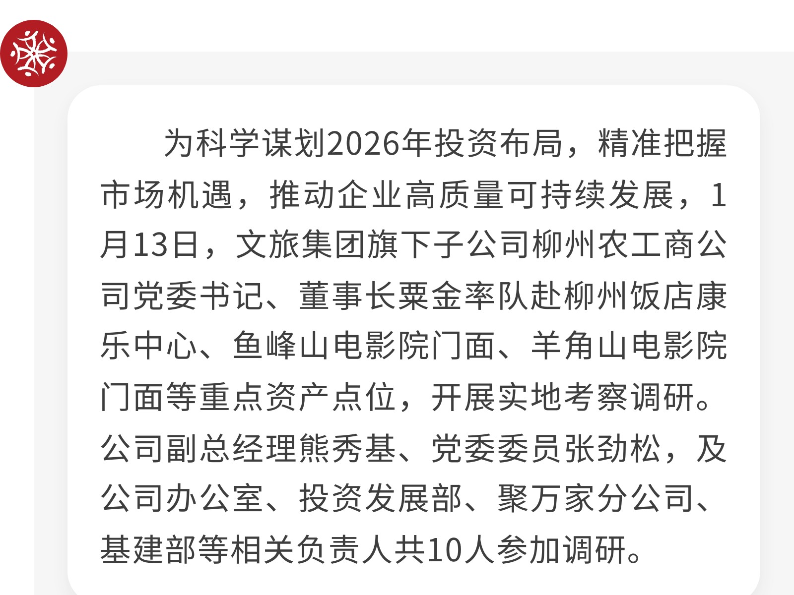 【錨定發(fā)展謀新篇】農(nóng)工商公司實(shí)地考察2026年投資項(xiàng)目 發(fā)布時(shí)間:2026年01月16日 14時(shí)來(lái)源:本站原創(chuàng)瀏覽:42 人次