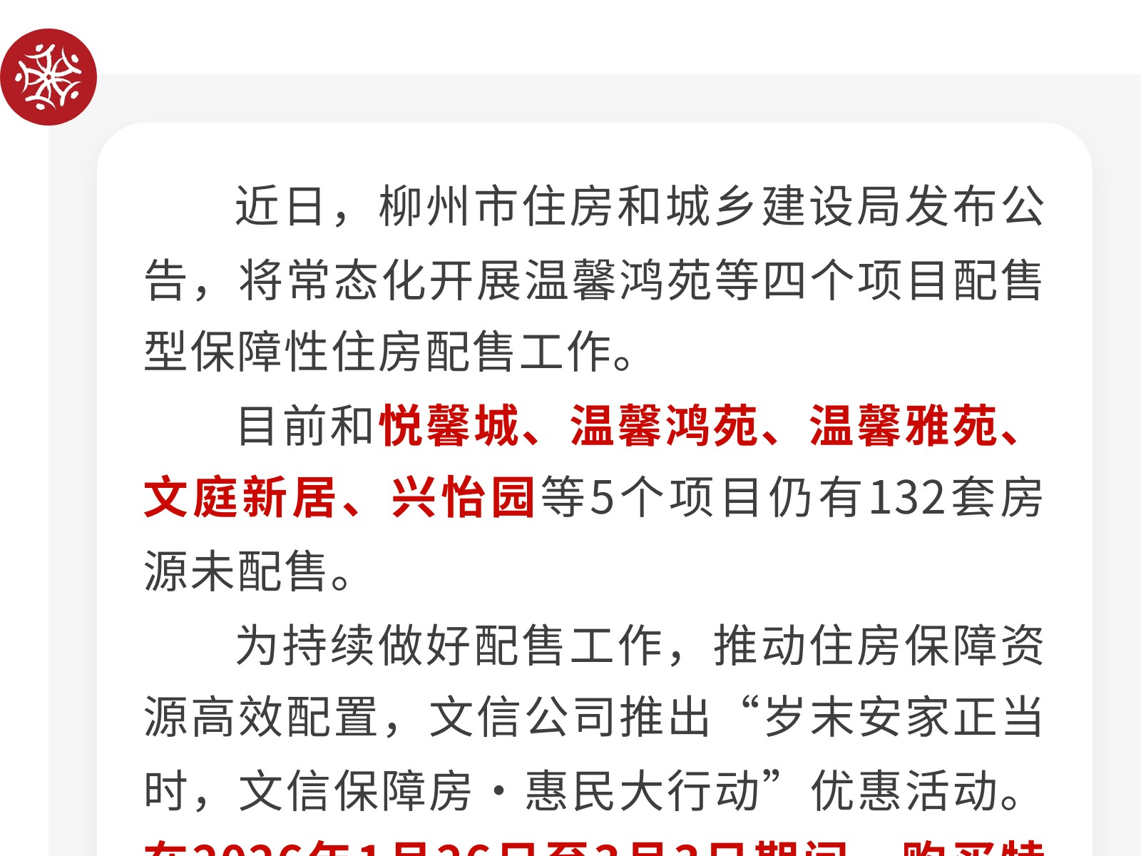 比回南天更猛!今起,申請柳州這些保障房,有2萬元補貼! 發(fā)布時間:2026年01月28日 13時來源:本站原創(chuàng)瀏覽:40 人次