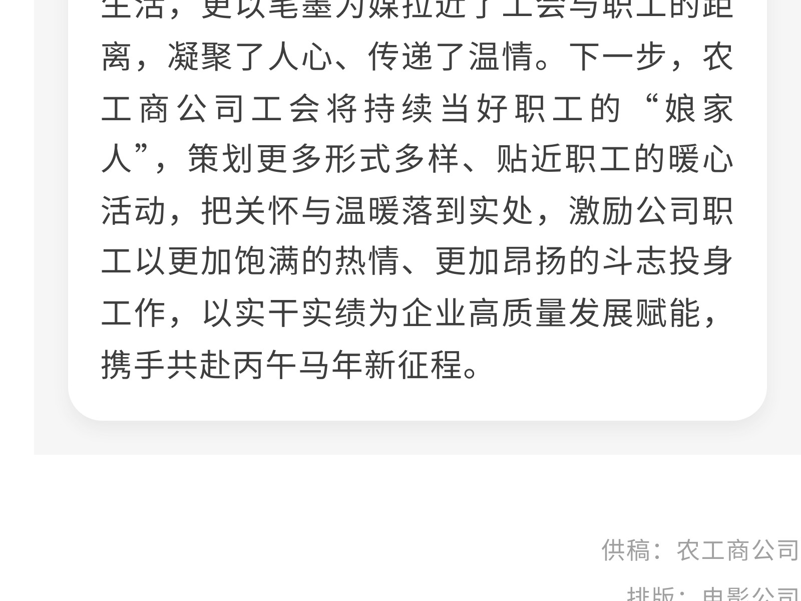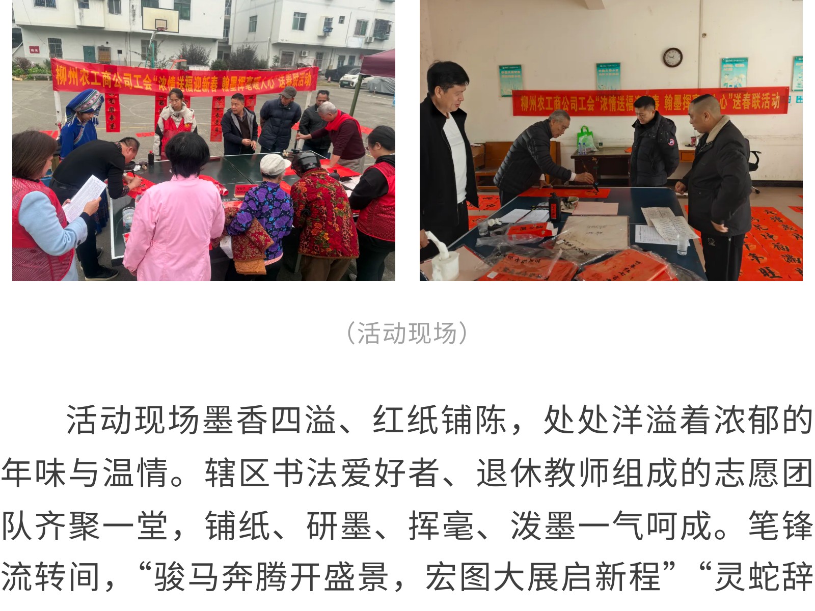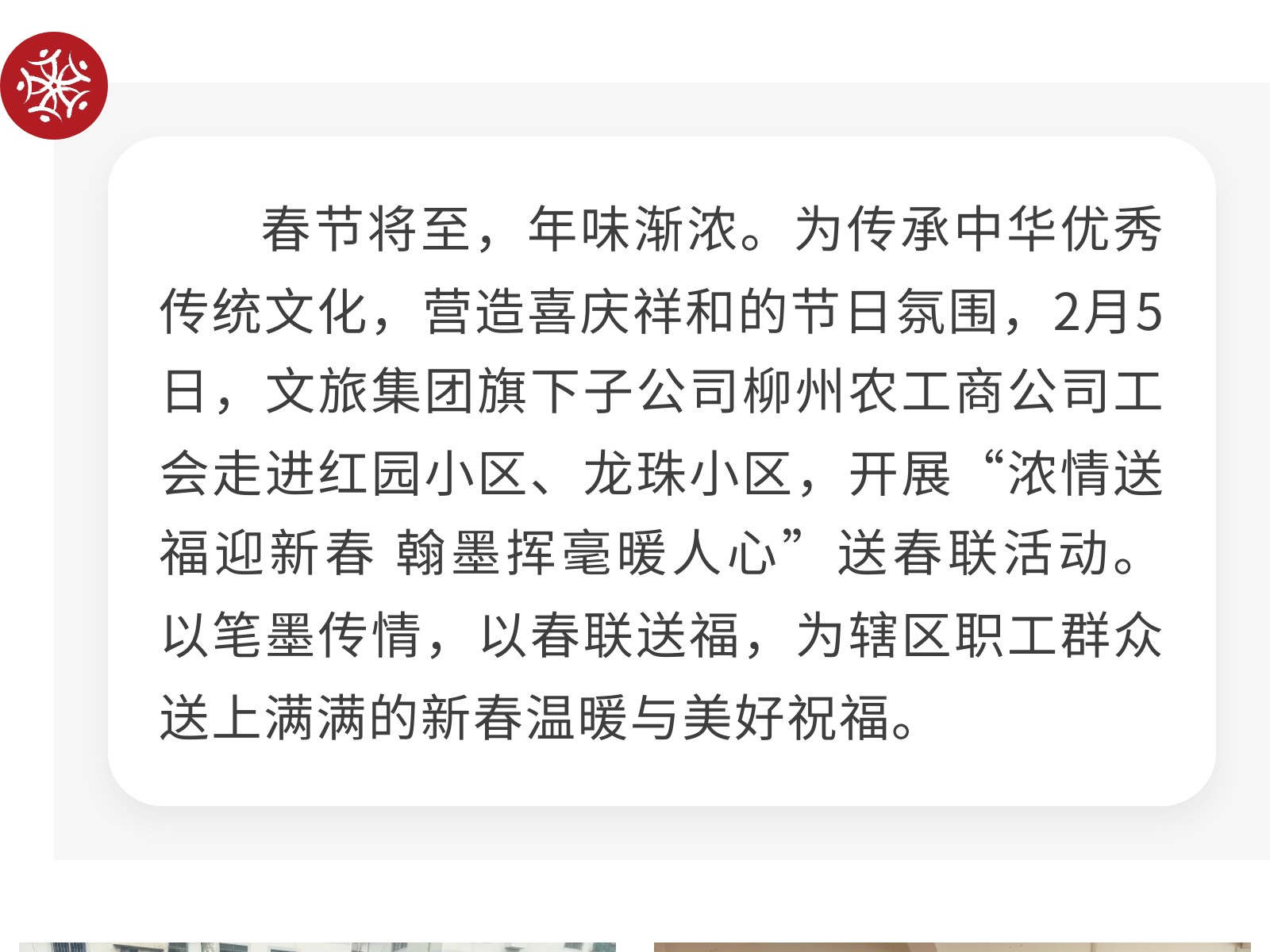 濃情送福迎新春 翰墨揮毫暖人心——柳州農(nóng)工商公司工會(huì)開(kāi)展送春聯(lián)活動(dòng) 發(fā)布時(shí)間:2026年02月06日 12時(shí)來(lái)源:本站原創(chuàng)瀏覽:15 人次